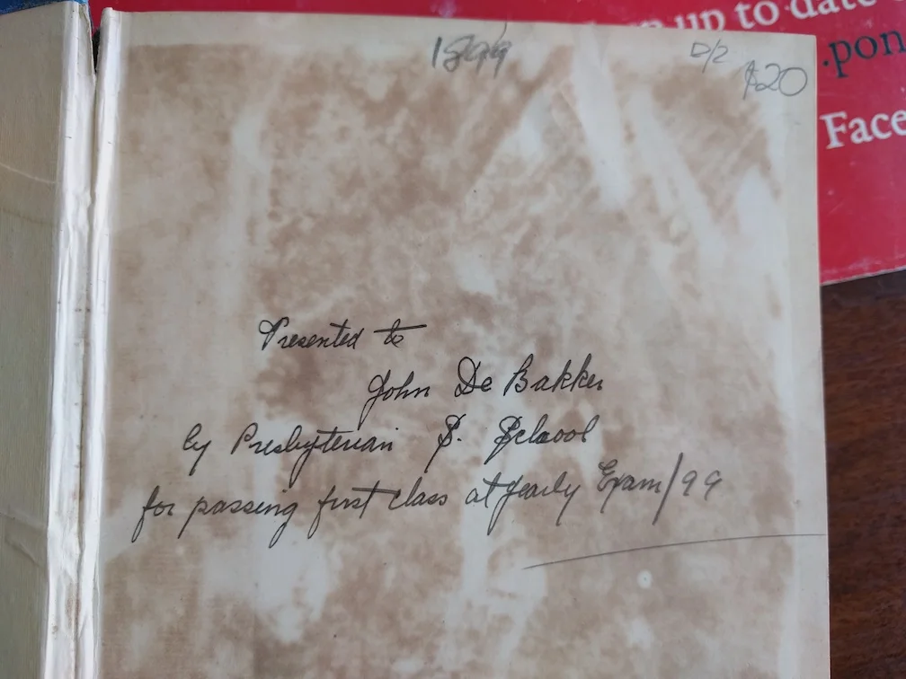 Five score and 18 years ago July 13, 2017 Hayden Glass A delightful hardback Victorian novel, complete with dedication to a John de Bakker from 1899. $20.