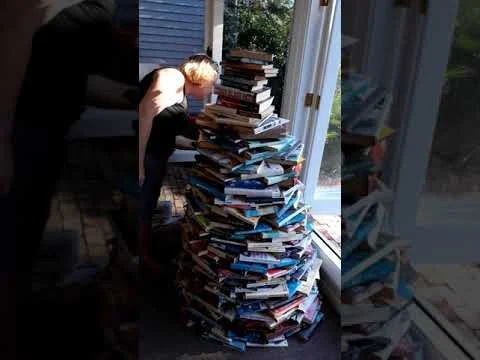 Vale book tree February 1, 2018 Hayden Glass Before, during and after the 2018 version of the book tree. Surprisingly, despite a sizable media contingent at the event, there was no footage captured of the main collapse. Next year!